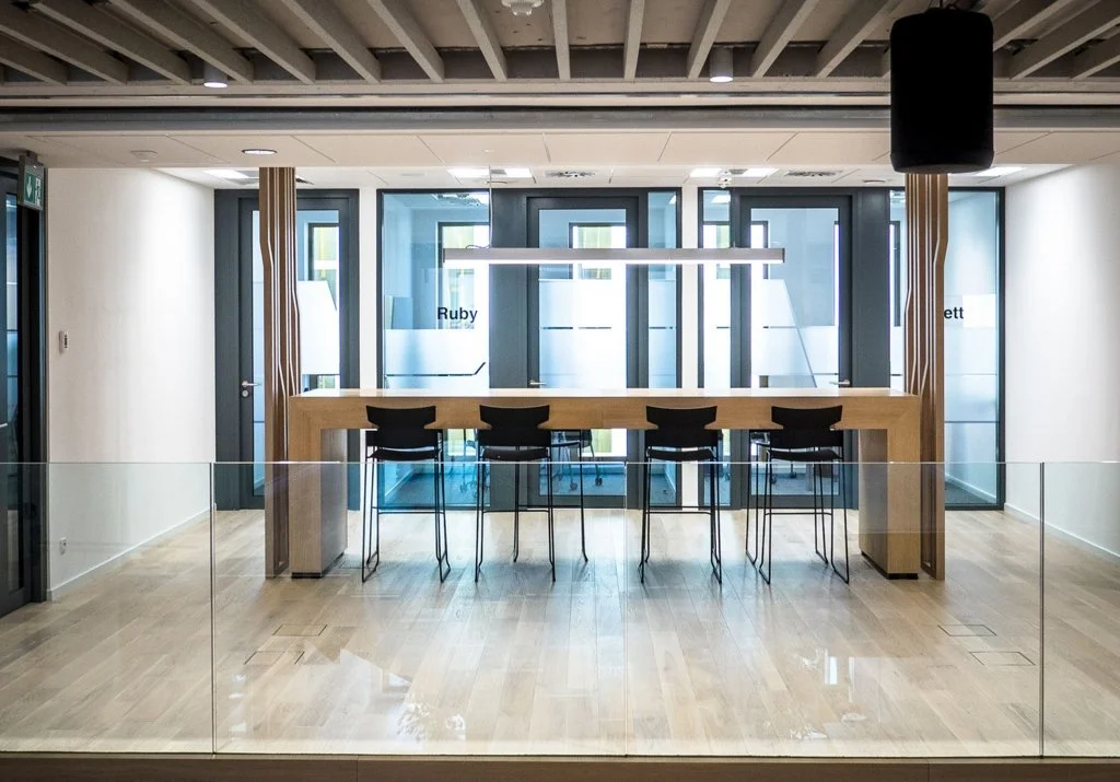 Mentor Graphics’ European R&D centre in Katowice, located in the Silesia Star complex, was designed to bring a fast-growing engineering community together across two interconnected floors. The brief was to create a contemporary, light-filled workplace that supported deep focus as well as informal knowledge sharing, anchored by an internal staircase that stitched the levels into one community. Around this vertical link, open team neighbourhoods, project labs and flexible collaboration areas were arranged to promote visibility and cross-disciplinary exchange, while quiet rooms and phone booths provided acoustic refuge for concentrated tasks. Social zones and kitchen hubs were positioned to encourage informal meetings and a sense of belonging for international staff relocating to Silesia. The overall environment balanced the precision of a technology brand with warmer, human-scaled materials, reflecting Mentor Graphics’ ambition to attract talent and signal long-term commitment to Katowice’s innovation ecosystem.